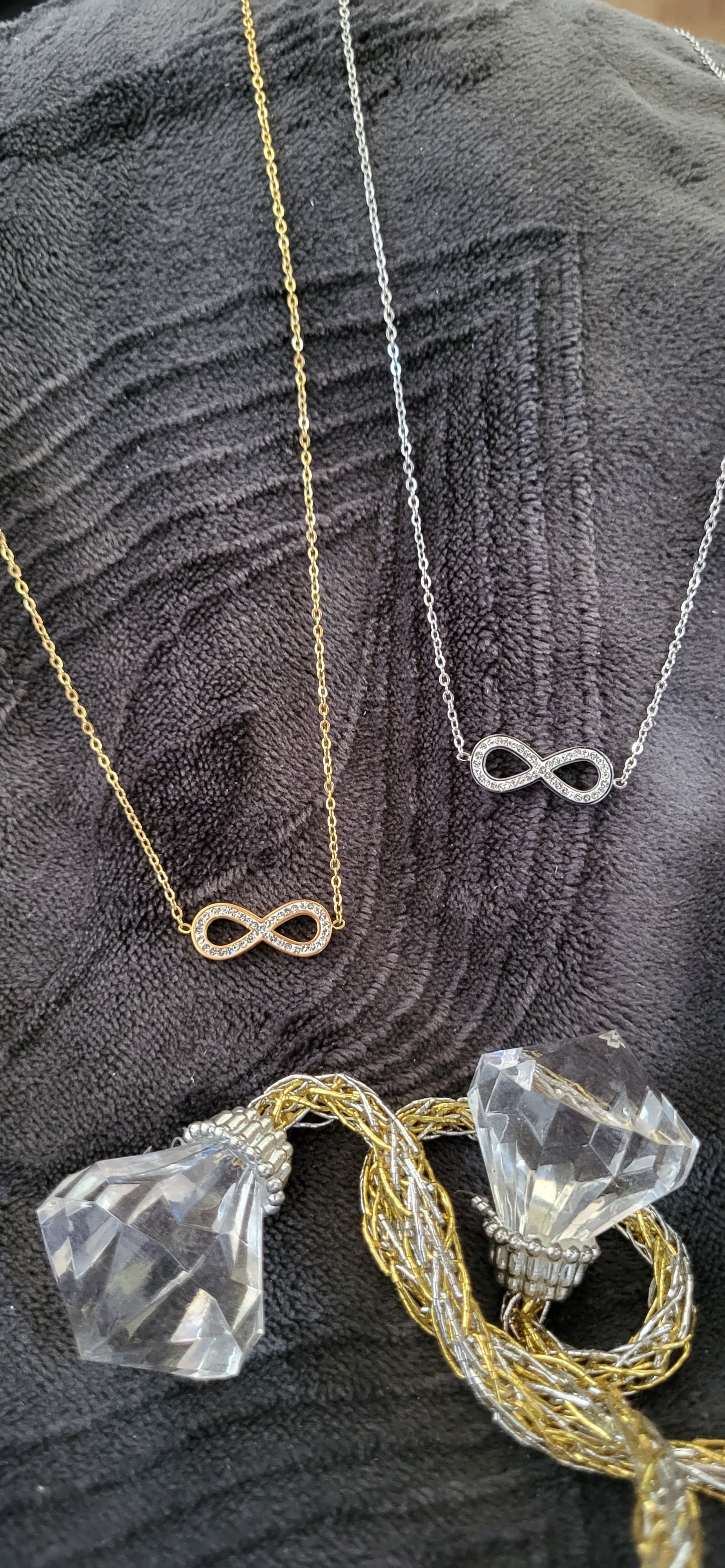 Collier infini en acier inoxydable avec strass disponible en doré ou argenté
