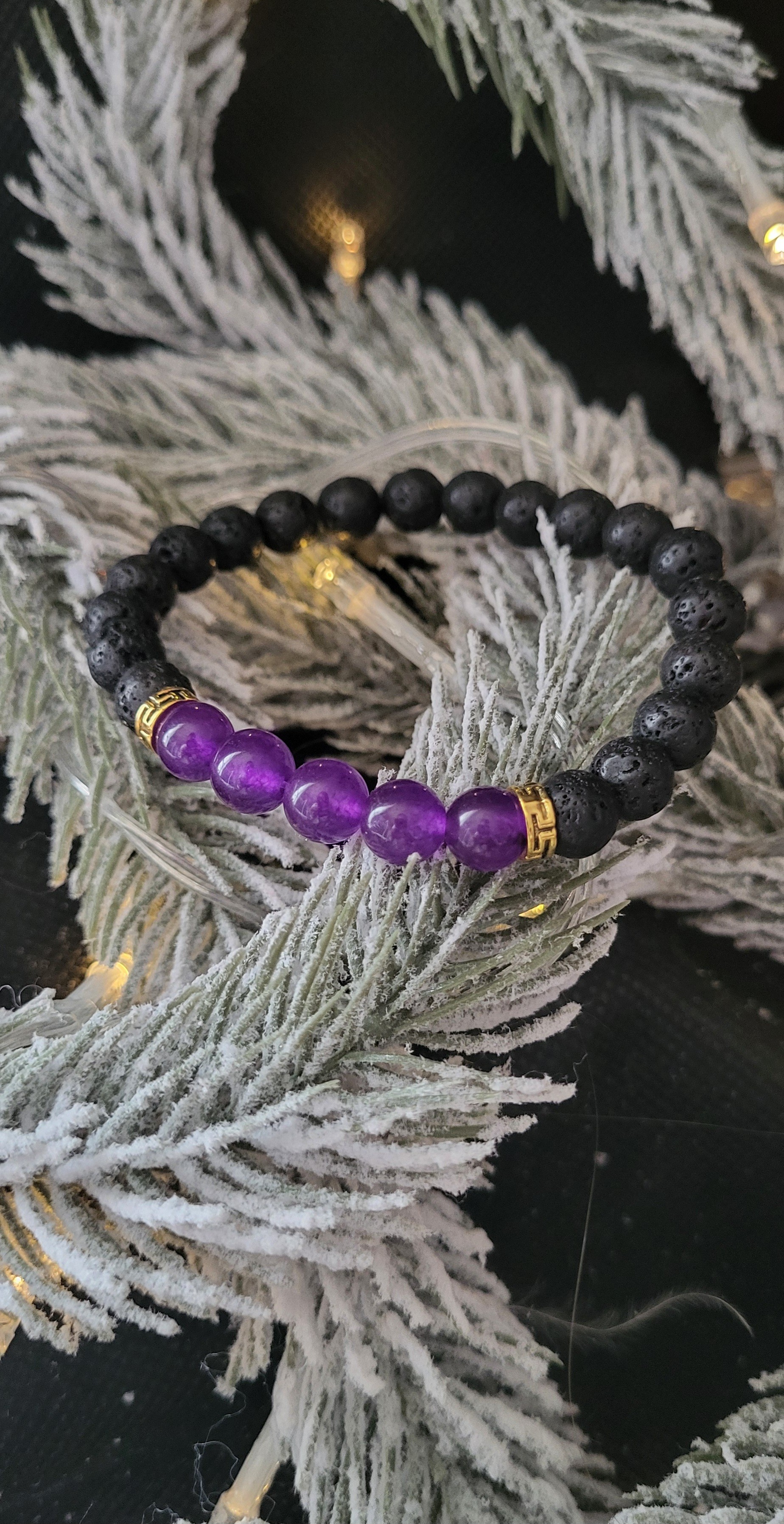 bracelet en pierres volcanique et pierres d'améthyste
