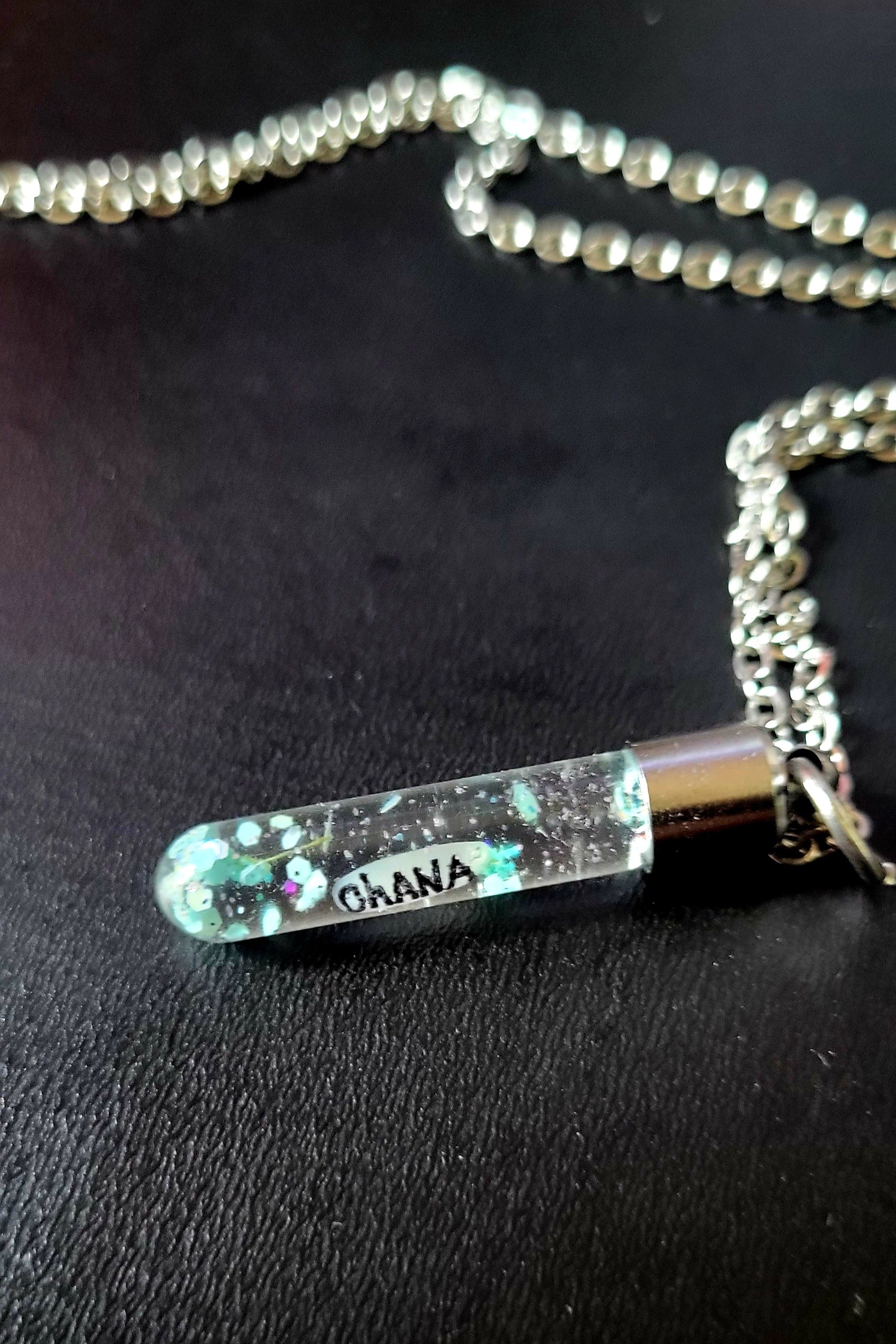 Collier porte bonheur? Ohana personnalisable dans une Bouteilles avec nom écrit sur un grains de riz