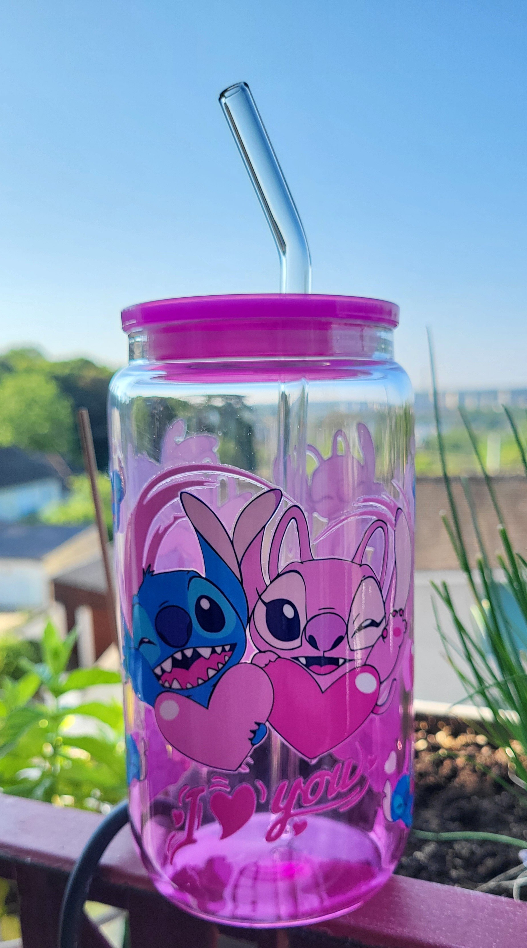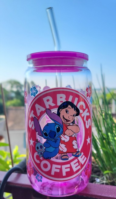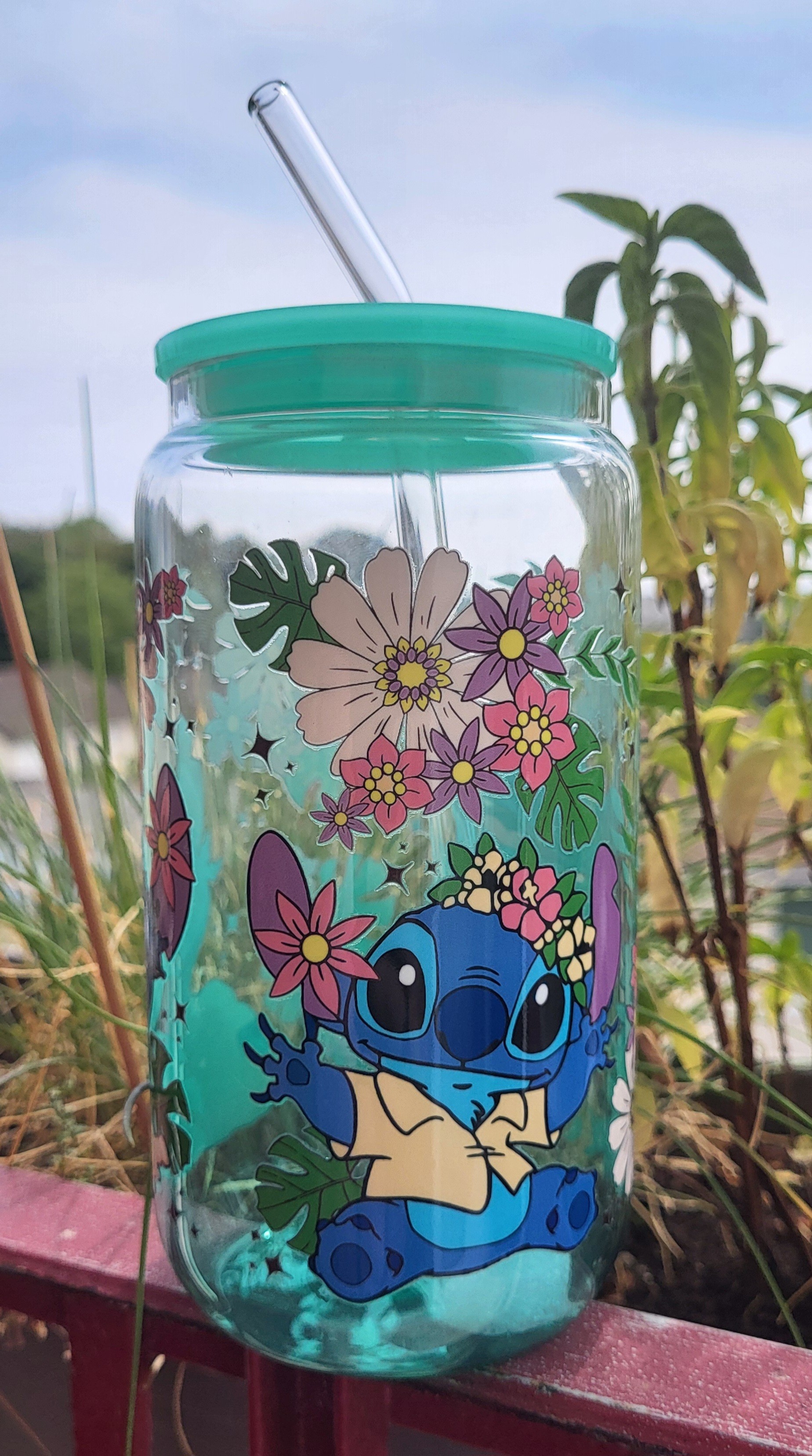 Gobelets Stitch colorés en verre avec pailles